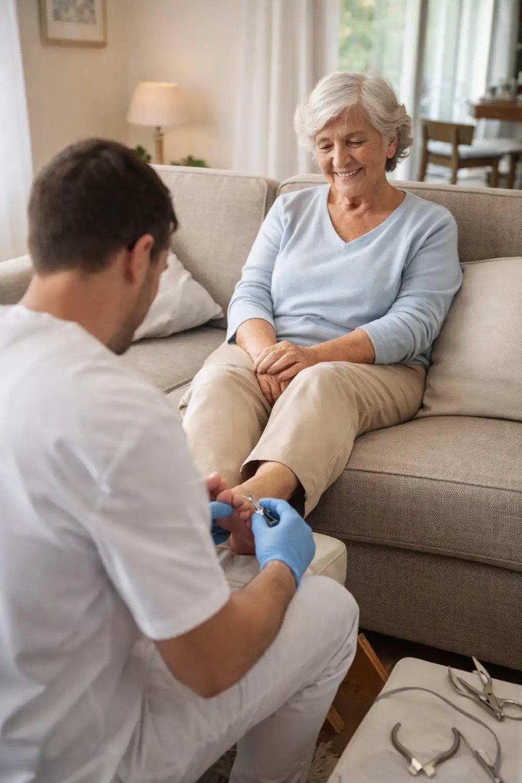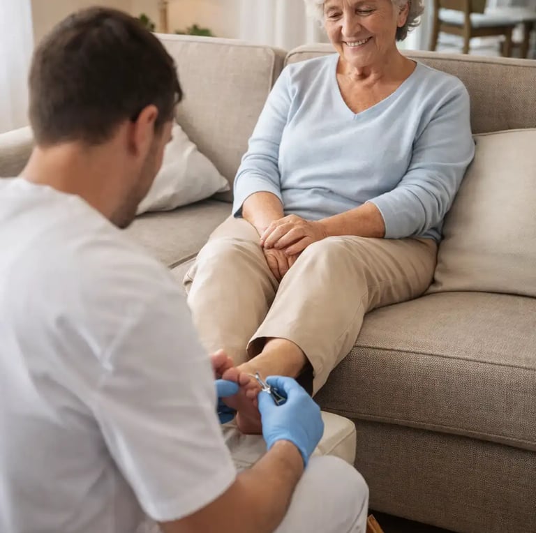 Servicio de podología a domicilio para personas mayores, con atención profesional, segura y adaptada a sus necesidades. Muy recomendado para diabéticos.